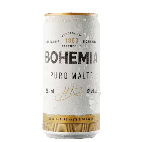 Cerveja Bohemia Lata. A cerveja Bohemia é composta de extrato primitivo comum, tem baixa fermentação, seu aroma e sabor são suaves e seu amargor é diferenciado. Graduação Alcoólica 5%.Contém 269ml. Cerveja Nacional.