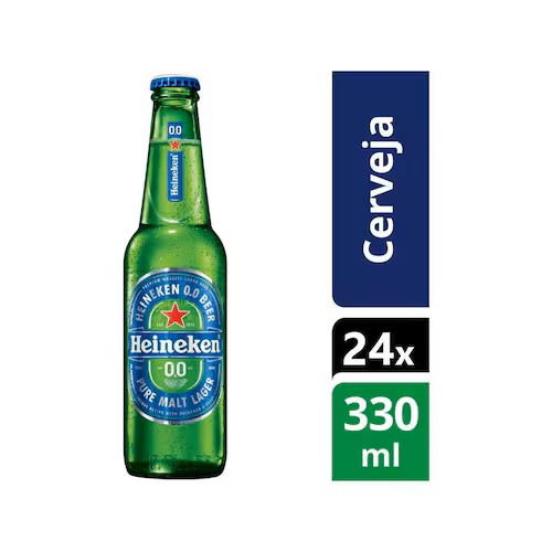 Cerveja Heineken 0.0 Pilsen Lager sem Álcool -24 Unidades 330ml A cerveja é uma das bebidas mais apreciadas em todo o mundo e item essencial nos momentos de festa, celebração e lazer. Na hora de escolher dê preferência para uma bebida de alta qualidade e sabor agradável como a Cerveja sem álcool Heineken 0.0 Puro Malte Lager. Ela é produzida apenas com ingredientes naturais, assim como a Heineken que você já conhece, porém, após a fermentação, o álcool é então gentilmente removido da bebida. Para garantir um sabor perfeitamente equilibrado, com notas frutadas e corpo suavemente maltado, ela é harmonizada pelo mestre cervejeiro ao final do processo.Além disso, a Heineken sem álcool também é produzida somente com malte de cevada, caracterizando portanto, uma cerveja puro malte. Isso tudo com o alto padrão de qualidade Heineken, uma marca fundada em 1873 e que hoje é uma das mais reconhecidas e admiradas, estando presente em 192 países. Este pack traz 24 unidades long neck de 330ml cada, perfeito para dividir com os amigos e no tamanho certo para matar sua sede.Tipo: Sem álcool