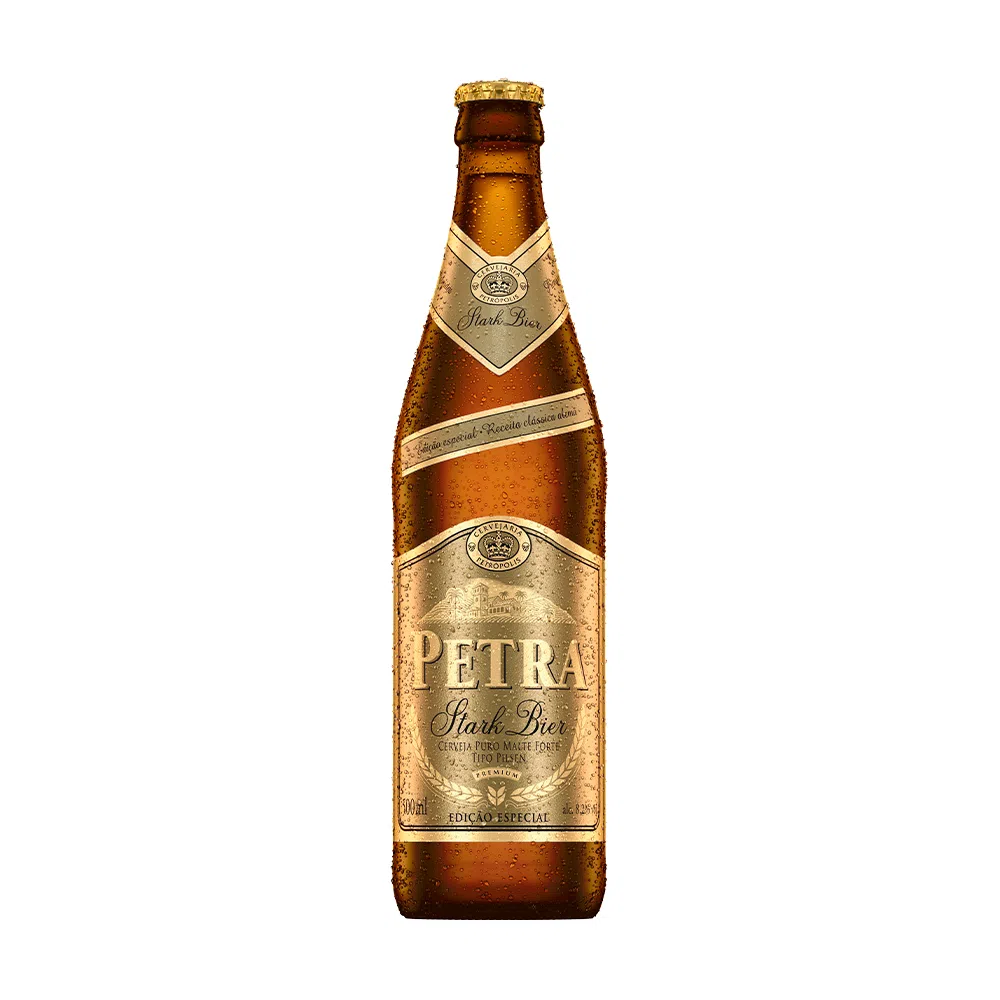 Cerveja Petra Stark Bier 500 ml. O inverno rigoroso das terras altas alemãs exige uma alimentação reforçada e com a cerveja não seria diferente, o que levou ao surgimento das Stark Biers, que são cervejas fortes de alto teor alcoólico. E, a partir desta nobre e clássica receita, foi criada a Petra Stark Bier, uma cerveja Puro Malte, tipo Pilsen. Encorpada, de tom dourado profundo, é uma cerveja que surpreende aos paladares mais exigentes. Graduação alcoólica 8,2%. Conteúdo 500ml. Cerveja nacional.